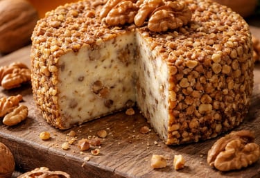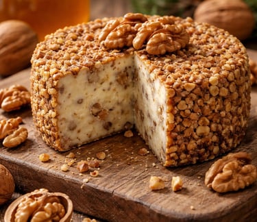 Sabor delicado y textura cremosa, donde el queso se combina con el toque crujiente de las nueces