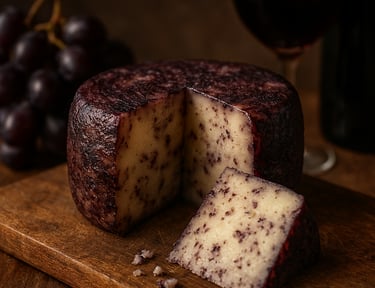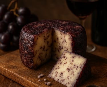 Queso de oveja macerado en vino tinto, de sabor intenso y aroma profundo, con un toque tradicional y único