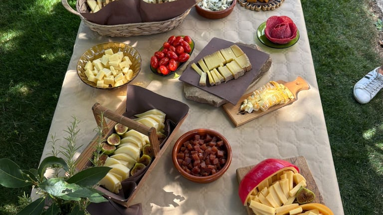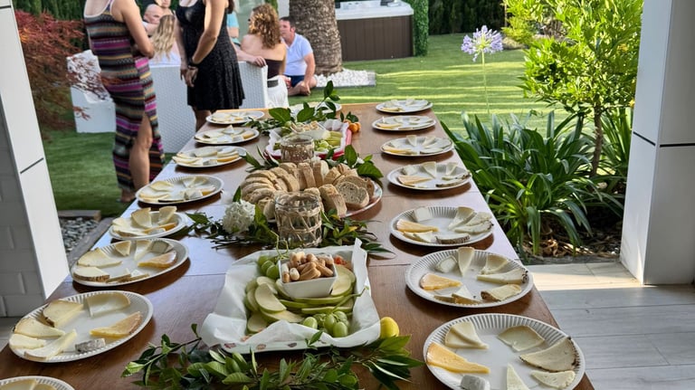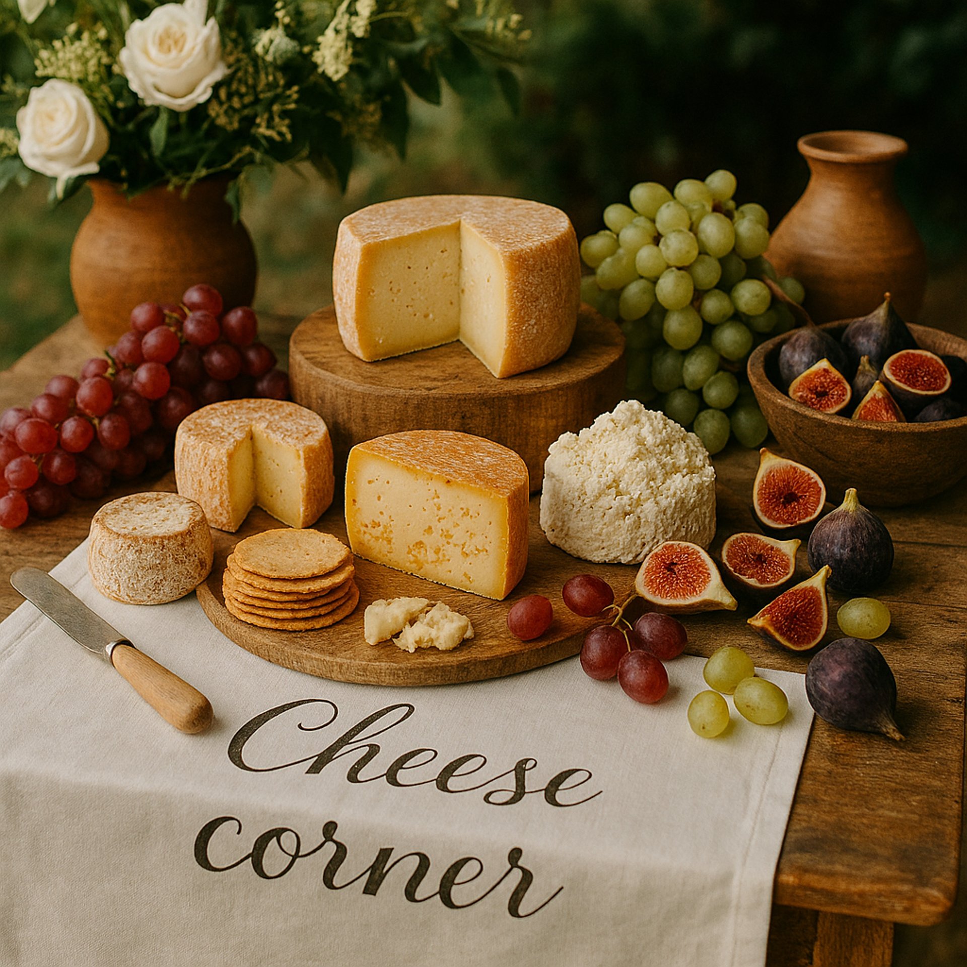 Un rincón gourmet de quesos listos para disfrutar en cualquier evento